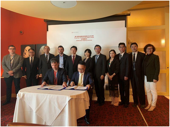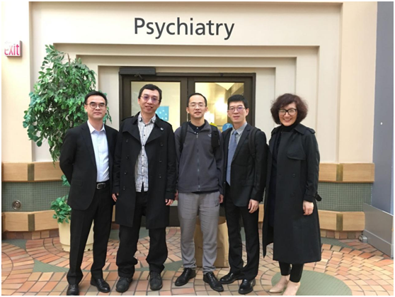 溫州醫(yī)科大學(xué)精神醫(yī)學(xué)學(xué)院黨委書記許冬武、耶利米信息科技有限公司董事長徐誼、總經(jīng)理項(xiàng)健、溫州康寧醫(yī)院國合部主任王保鳳與艾伯塔大學(xué)精神醫(yī)學(xué)教授曹礴于艾伯塔大學(xué)
